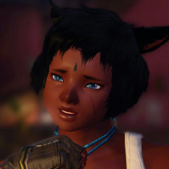appearance. Tikvah is a muscular, short Miqo'te. Her short, fluffy black curls frame her round face. She has thick brows and long lashes, and visible body hair curls over the scars on her arms, legs, and stomach. Her tail is shaven, styled like a lion's. She's often wearing comfortable adventurer's clothes, button-ups and scarves. persona. Tikvah is dependable and friendly. She can be foolhardy and stubborn, but her heart is always in the right place. She may be a little too friendly, unfortunately, which some people can find grating. Despite her bright and cheerful disposition, it isn't uncommon to catch her with a far-off look in her eye. abilities. Tikvah trained many years with the Gladiator's Guild in Ul'dah, and was quite the skilled swordswoman in her time on the Bloodsands. Though she's since retired, her preferred weapon remains a sword and shield. This is, however, just preference - she's no stranger to the use of improvised weapons or unarmed combat, and carries a collection of blades on her at all times. Aside from this, she's extremely skilled with animals and plants, and is quite handy!